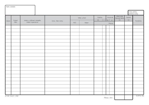 Neprepisovacia. - Nečíslovaná. - Formát A4 na šírku. - Kniha obsahuje 80 listov bez perforácie.