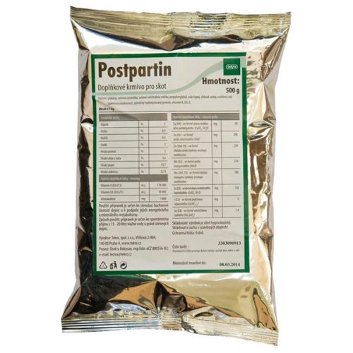 Vodorozpustný prípravok na spontánny príjem na podporu zdravotného stavu otelených a chorých kráv. Minerálne doplnkové krmivo pre otelené kravy a vysokotehotné jalovice a pre zvieratá so zdravotnými poruchami vo všetkých obdobiach reprodukčného cyklu, pre dojnice s ketózou alebo pečeňovou steatózou. Prípravok sa predkladá práve otelenému zvieraťu na spontánne vypitie. Otelená dojnica by mala Postpartin prijať pred prvým napitím z napájačky.