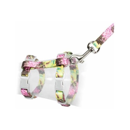 Nylonový postroj s vodítkom je ľahko nastaviteľný podľa veľkosti mačky, pohodlný na nosenie a ideálny pre bezpečné vonkajšie prechádzky. Zaisťuje optimálne rozloženie ťahovej sily a má praktické zapínanie na dve plastové pracky. Rozmery (cca): postroj 20–35 cm dĺžka vodítka 125 cm šírka pásikov 1 cm Materiál: nylon Farba: ružová s hnedou a žltou, žltá s modrou a fialovou, ružová s modrou, ružová s bielou a čiernou – dodávame podľa skladovej zásoby. Ak máte záujem o konkrétnu farbu, napíšte ju do poznámky v objednávke. Vzor: kvety