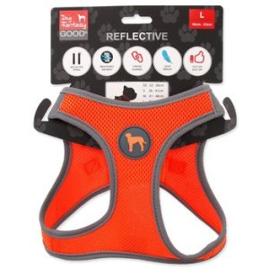 • Po obvode celého postroja sú všité reflexné prvky na bezpečný pohyb zvieraťa.