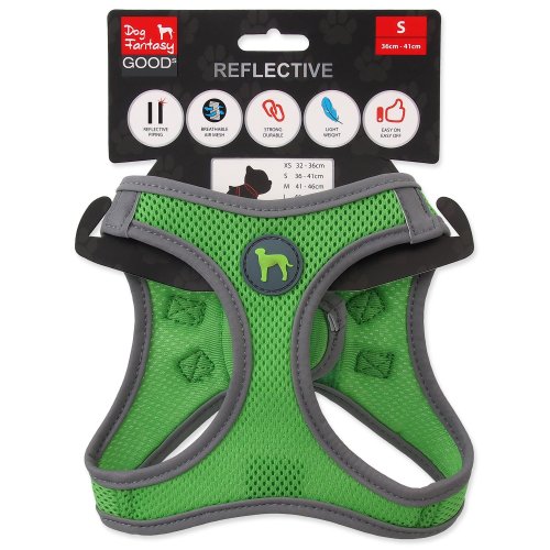 Postroj pre šteňatá s nastaviteľným obvodom hrudníka v hornej časti.