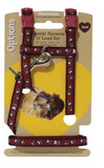 Nylonový postroj a vodítko pre králiky - vzor bielej labky. Nastaviteľný nylonový postroj pre králika s obvodom krku 19-30 cm a obvodom tela 25-41 cm. Postroj so zapínaním na bezpečnostné plastové pracky as kovovým pútkom pre ľahké pripnutie vodítka. Nylónové vodítko v rovnakom dizajne ľahko pripnete k postroju pomocou kovovej karabinky. Postroj s vodítkom je k dispozícii v červenej (vínovej) alebo modrej farbe. Šírka postroja a vodítka: 1 cm.