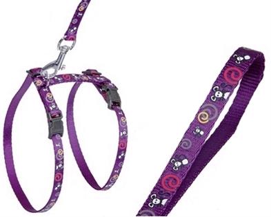 Pohodlný fialový postroj s vodítkom pre mačiatka z nylonu. Postroj a vodítko sú vyrobené z mäkkého nylonového materiálu s smiešnym motívom myší. Vďaka kompletnej nastaviteľnosti sa nemusíte báť, že by postroj mačku škrtil alebo ju padal. Farba: fialová Rozmery: postroj - 10 mm x 20 - 35 cm vodítko - 1,00 x 120 cm