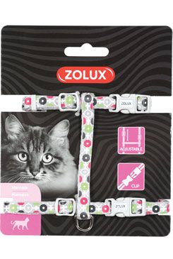Nylonový postroj Zolux pre mačky. Postroj je doplnený o praktický D-krúžok, vďaka ktorému je možné k postroju ľahko pripnúť vodítko. Plastové spony umožňujú upevniť postroj na mačku a individuálne nastaviť jeho rozmer.