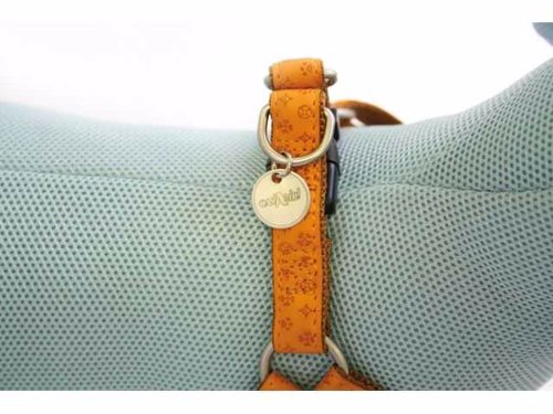 Kožený postroj béžovej farby s celopotlačou, podšitý jemným nylonom v rovnakej farbe.