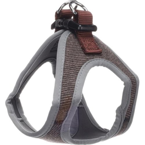 Hrudný postroj z odolného nylonu je opatrený plastovou prackou na zapínanie a dvoma chrómovanými D-krúžkami na pripnutie vodítka. Pre väčšie pohodlie psa sú okraje postroja obšité pevným lemom. Veľkosť: XS Rozmery (cca): A = 30 cm, B = 30 cm (viď obrázok) Materiál: nylon Farba: tmavo hnedá