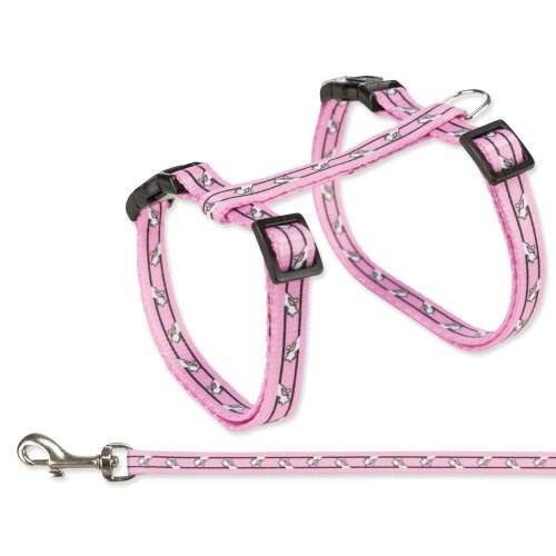 Postroj s vodítkom pre mačky milujúce prechádzky. Je vyrobený z nylonu. Zvyšuje bezpečnosť a predchádza úrazom. Zapínanie pomocou rýchlospony.
