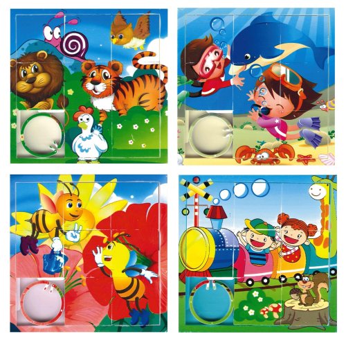 Návyková zábava pre šikovné prstíky! Posúvacie puzzle nielen na rozptýlenie detí. Rozhádžte dieliky a následnými pohybmi - doľava, doprava, hore a dole, poskladajte farebný obrázok. Osem rovnako veľkých dielikov s postrannými drážkami tvorí jeden finálny obrázok, ktorý je možné opätovne skladať a rozkladať pomocou jednoduchých pohybov jeho plastových častí. Štvorcové dieliky sú upevnené v rámčeku a vďaka drážkam je možné jednoducho posúvať do strán bez toho, aby vypadávali. Na rámčeku je zobrazená miniatúra výsledného obrázku, ktorá slúži ako predloha pre posúvanie dielikov na správne miesto. Súčasťou balenia je aj plastová západka, ktorá drží výsledný obrázok na svojom mieste. POZNÁMKA: Fotografia je iba ilustratívna, motívy dodávame podľa skladových zásob. Rozmer zloženého puzzle cca 8,5 x ,5 cm