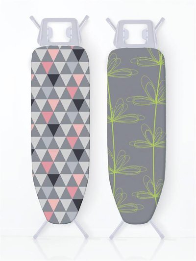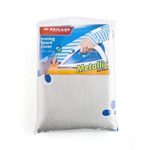 Metalický povrch poťahu odráža teplo, čím urýchľuje žehlenie. Upevnenie poťahu k doske pomocou sťahovacieho povrázku.