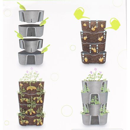 Pestovateľská nádoba od Plastkonu je praktická vychytávka pre každého záhradkára. Tento skladací vyvýšený záhon sa skladá zo štyroch poschodí a využijete ho na pestovanie nielen pre zemiaky, ale aj pre jahody, bylinky a pod. Použitie je jednoduché, iba naplníte vždy poschodie zeminou a sadenicami a pridáte poschodie ďalšie. Vodou prelievate zo strán aj stredom. Voda pretečie do spodných poschodí vďaka dieram na dne každého poschodia. Tento záhon neobsahuje podmisku. - balenie: 4 poschodia, stohovateľné - každé poschodie má na dne diery na pretekanie - rozmery jedného poschodia: najdlhšia strana 38 cm x výška 16,5 cm - celkové rozmery po zložení: cca 61,5 x 41 cm - materiál: PP - hmotnosť : cca 1,4 kg