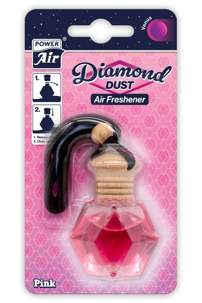 Osviežovač POWER AIR Diamond Dust 9 ml je kvapalinový osviežovač vzduchu na zavesenie do voľného priestoru. Osviežovač je v pohári v tvare diamantu, má drevené viečko.