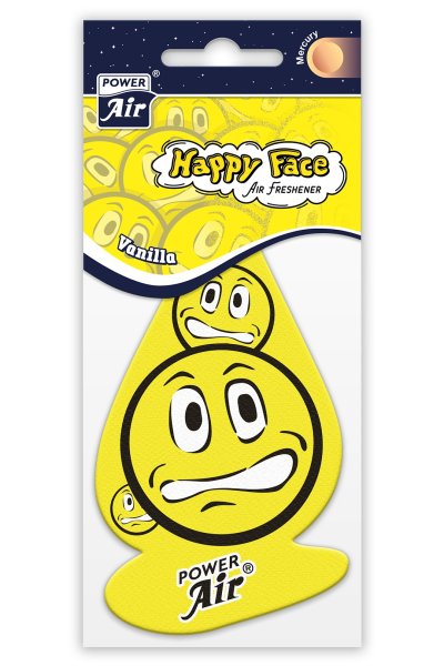 Papierový osviežovač vzduchu na gumičke na zavesenie do voľného priestoru v hravom dizajne emotikonov - "Smiech", "Grimasa" a "Zuby". Dlhotrvajúca vôňa prevonia daný priestor a interiér.