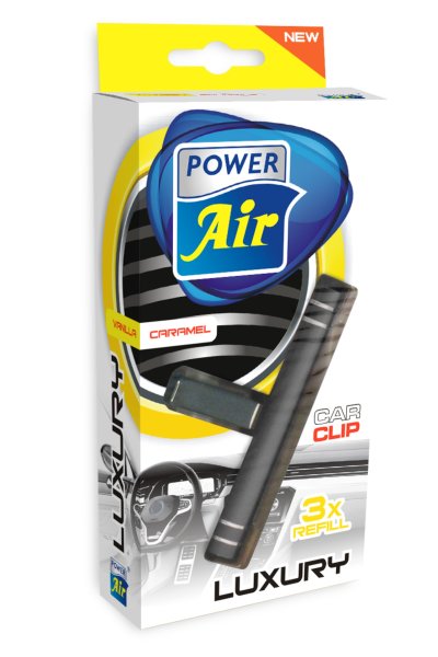 Osviežovač POWER AIR Luxury je exkluzívny osviežovač do mriežky ventilátora. Špeciálna bavlnená vložka naplnená vonnou esenciou je umiestnená v luxusnom kovovom púzdre čiernej farby.