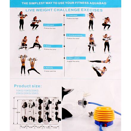 Merco Power Aquabag 20 kg je univerzálna posilňovacia pomôcka na zlepšenie fyzickej kondície. Široká škála tréningových možností a variabilita intenzity cvičenia robí z posilňovacieho vaku na vodu ideálnu fitness pomôcku pre zlepšenie sily, rovnováhy, stability a obratnosti. Môžete s ním cvičiť prakticky kdekoľvek – doma, vonku, na dovolenke a pod. Tréning s vodným vakom aktivuje viac svalov a núti ich pracovať viac ako bežné vybavenie, a to vrátane jadra a stabilizačných svalov. Vodný vak je vyrobený z pevného PVC materiálu so zosilnenou stenou. Vak má štyri neoprénové držadlá a jeho hmotnosť je možné naplniť v rozmedzí od 5 do 20 kg. Súčasťou balenia je aj ručná pumpička na dofúknutie. Nastavte si svoj tréning s praktickou fitness pomôckou Merco Power Aquabag! Intenzitu je možné ľahko nastaviť na požadovanú úroveň pridaním alebo ubraním vody. Začnite zľahka s malým množstvom vody, potom zvýšte počet opakovaní na cvik a na koniec tréningu môžete pridať viac vody pre väčšiu záťaž, a teda aj väčšiu intenzitu. Vďaka možnosti naplniť vodný vak požadovaným množstvom vody a doplniť ho vzduchom je vhodný pre každú intenzitu cvičenia. Upozornenie: Tento produkt je určený iba na súkromné použitie. Deti udržujte v bezpečnej vzdialenosti od fitness produktu. Power Aquabag 20 kg: - materiál: PVC - nastaviteľná hmotnosť: 5 - 20 kg - celkové rozmery: cca 80 x 20 cm (dĺžka x priemer) - hrúbka: 70C - pumpa súčasťou balenia