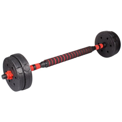 Súprava nakladacích činiek Merco Power Set 15 patrí do základného vybavenia každej domácej posilňovne. Oproti klasickým činkám má táto sada veľkú výhodu, a to, že Power Set môžete využívať ako dve jednoručné činky alebo ako jednu obojručnú nakladaciu č inku. Balenie obsahuje dve jednoručné osi, spojovací diel pokrytý penou a sadu kotúčov, vďaka ktorým si nastavíte celkovú hmotnosť činky až na 15 kg. Ak potrebujete doplniť svoju domácu posilňovňu nielen činkami, pozrite na našu kompletnú ponuku fitness: stroje, lavice a iné pomôcky Power Set 15: - sada: 2x jednoručná os, spojovací diel, 4x uzáver, kotúče 4 x 1.5 kg + 4 x 2 kg - materiál: plast, cement - jednoručná os: dĺžka 36 cm, priemer držadla 3 cm - spojovacia časť obalená penou: dĺžka 38 cm, priemer 4 cm - kotúč 1.5 kg: priemer 18 cm, šírka 3 cm - kotúč 2 kg: priemer 19 cm , šírka 4 cm