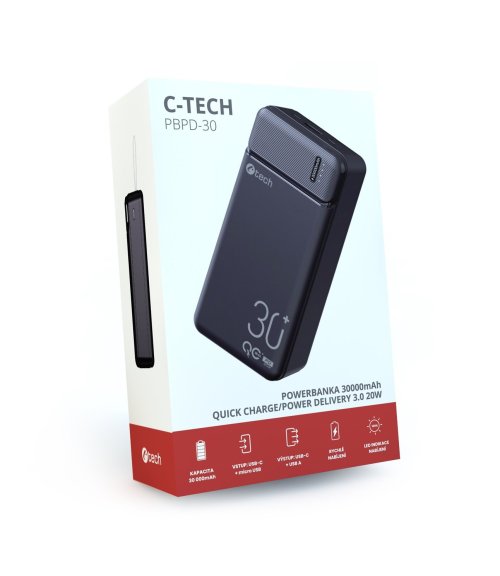 Predstavujeme vám novú powerbanku C-tech PBPD-30 s kapacitou 30000mAh, ktorá v sebe spája výkon, rýchlosť a elegantný dizajn. Táto powerbanka využíva pokročilé Li-pol články, čo zaisťuje spoľahlivý a dlhotrvajúci zdroj energie pre vaše mobilné zariadenie.