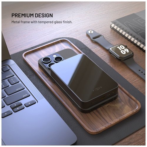 Telo powerbanky kombinuje hliníkovú zliatinu a tvrdené sklo, čo zaisťuje vysokú odolnosť aj moderný vzhľad. Kompaktné rozmery 100 × 68 × 15,43 mm a hmotnosť 208 g umožňujú ľahké prenášanie.