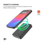 Powerbanka využíva modernú technológiu Qi2, ktorá umožňuje bezdrôtové nabíjanie s výkonom až 15 W. Vďaka integrovaným MagSafe magnetom sa automaticky zarovná s kompatibilnými telefónmi a zaistí efektívny prenos energie bez nutnosti kábla.