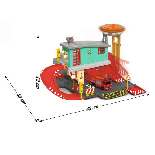 Hasičská stanica s obľúbeným Požiarnikom Samom má 2 poschodia, pristávaciu plochu pre vrtuľník, odpaľovaciu dráhu, súčasťou kovové hasičské auto Jupiter a ďalšie príslušenstvo. Rozmery 43x23x39 cm (šxvxh).