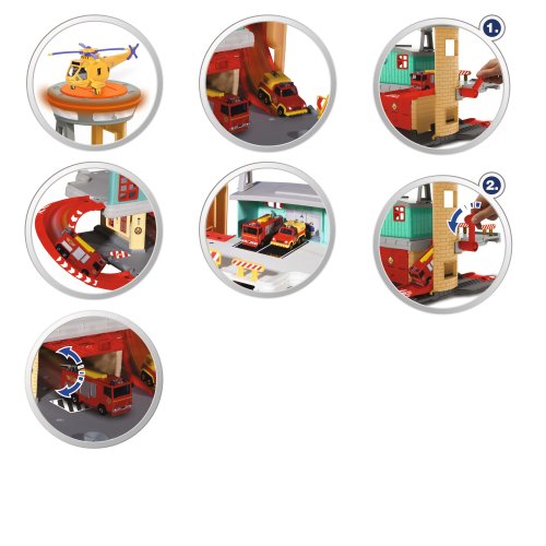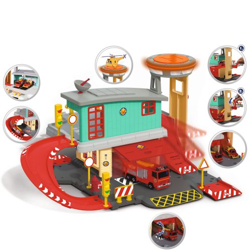 Hasičská stanica s obľúbeným Požiarnikom Samom má 2 poschodia, pristávaciu plochu pre vrtuľník, odpaľovaciu dráhu, súčasťou kovové hasičské auto Jupiter a ďalšie príslušenstvo.