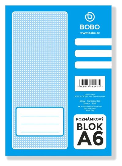 Skvelý pomocník na každodenný život. Do práce, do školy aj na doma. br brLepený poznámkový blok s čistými listami z bezdrevného papiera je vhodný do školy aj kancelárie, predovšetkým na rýchle poznámky. Vďaka lepenej väzbe sa listy z bloku ľahko odtrhávajú. br brBlok A6 br• Formát: A6 br• Lineatúra: čistá br• Počet listov: 50 br• Papier: 70g/m2 br• Väzba: lepená, horná