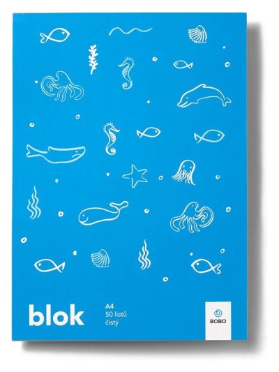 Veľký poznámkový blok A4 s ručne kreslenými motívmi morského sveta je určený na rýchle poznámky, kresby alebo náčrty. Obsahuje 50 čistých listov. br brPoznámkový blok pre deti s motívom mora je vhodný pre školské zápisky, rýchle kresby, rozpisovanie alebo čmáranie. Veľkosť A4 sa zmestí do každého batôžka alebo aktovky. Ponorte sa do hlbín tvorenia. br brPoznámkový blok Svet A4 br• Formát: A4 br• Počet listov: 50 br• Papier: 70 g br• Lineatúra: Čistá br• Väzba: Lepená