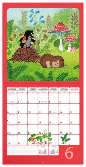 Krtko - postava mnohých kreslených príbehov Zdeňka Milera, ktoré obleteli celý svet. Poznámkový kalendár s ilustráciami z rozprávok dopĺňa prehľadné kalendárium od septembra 2025 do decembra 2026 v ôsmich jazykoch, mesačné fázy, dôležité sviatky a priestor pre poznámky na každý deň.
