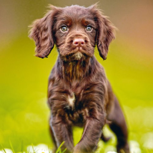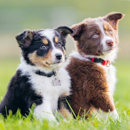 Roztomilé šteniatka na fotografiách v poznámkovom kalendári.