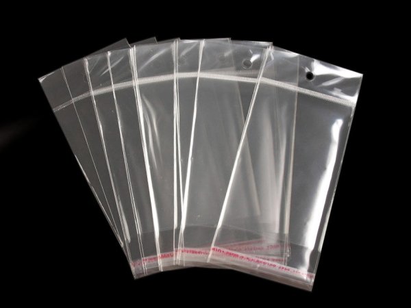 Lesklé vrecká o veľkosti 8 x 12 cm sú vhodné na zabalenie šperkov alebo menších výrobkov. Z jednej strany sú vrecká opatrené lepiacou lištou, vďaka ktorej ich ľahko zalepíte aj rozlepíte, az druhej strany závesom, aby ste ich mohli ľahko zavesiť na viditeľné miesto.