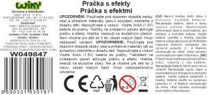 Práčka s efektmi. Rozmery 18.5x22x24.5cm. Po zapnutí on/off tlačidlom, zvoľte program a tlačidlo go/stop zapne pranie. batérie 3xAA nie sú súčasťou.