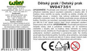 Prak. Veľkosť 20 cm. Balenie obsahuje prak a 5 loptičiek. Rozmery praku 15x20 cm. Priemer loptičky 2,8 cm.