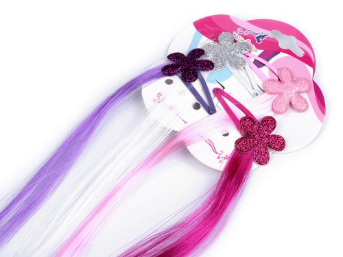 Sada farebných pramienkov na pukačke poteší predovšetkým malé dievčatká. Sú ozdobené textilnými ozdobami s glitrami, vďaka ktorým sa pôsobivo trblietajú. Pramienky skvele oživia účes. Pri detskej hre na princeznej sú neoceniteľným doplnkom. Každý pramienok má inú [farbu. Pukačky] dobre držia aj na jemných vlasoch.