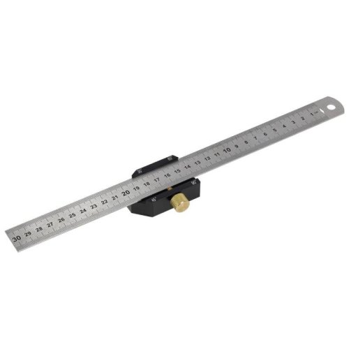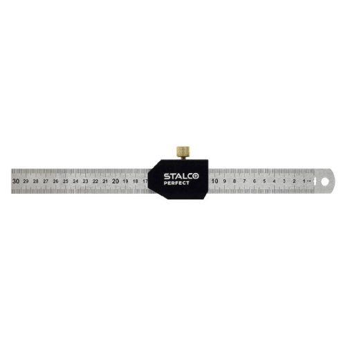Presné tesárske pravítko s dorazom je ideálne na presné značenie a sériové kótovanie, pričom hliníková základňa s vyznačenými uhlami 30°, 45°, 60° a 90° umožňuje rýchle nastavenie najčastejšie používaných hodnôt a nehrdzavejúce pravítko so šírkou 25 mm a hrúbkou 2,0 mm zaisťuje tuhosť, odolnosť a prehľadnú, ľahko čitateľnú stupnicu.