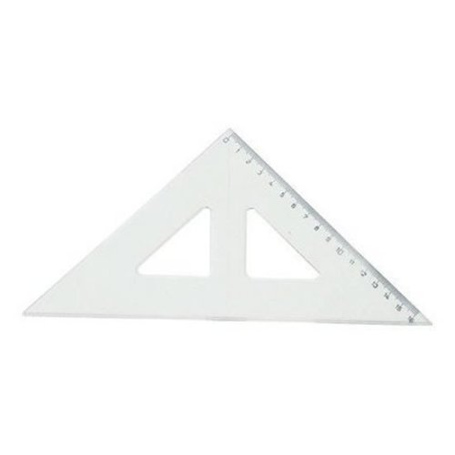 Priehľadné trojuholníkové pravítko s ryskou vhodné do hodín matematiky a geometrie. Dĺžka 16 x 16 x 25 cm.