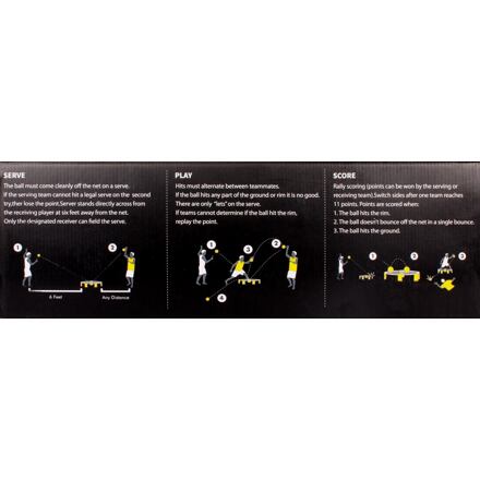 Roundnet je čím ďalej viac populárna, športová hra u nás aj vo svete. Táto spoločenská hra je určená pre 2 či 4 hráčov (tímy 2 na 2) a zahráte si ju ako doma, tak vonku. Kompletný set Pre Smash Ball značky Merco vám a vašim priateľom poskytne množstvo hodín zábavy, zdravého pohybu, potrénujete si svoj postreh, presnosť a rýchlosť. Set pre hranie roundnetu obsahuje konštrukciu z piatich plastových nožičiek, piatich plastových trubiek s háčikmi, sieťku, tri malé gumové loptičky s priemerom 10 cm, ručnú pumpičku s ihlou a praktický vak na jednoduché prenášanie a uskladnenie. Po zložení má trampolínka priemer približne 92 cm a výšku 20 cm. Či už zháňate hru na doma či dovolenku, set Pro Smash Ball zaručene zabaví celú rodinu. Hru začínate podaním = odpalom loptičky na sieť na protihráča . Ten má 3 dotyky na spracovanie a odpálenie loptičky späť o sieť (natiahnutou dlaňou). Hrá sa kým jeden tím nezíska 21 bodov. Ako sa počítajú body: - Ak hráč neodohrá späť do 3 úderov. - Loptička dopadne na zem. - Loptička zasiahne okraj konštrukcie (vrátane podania). - Loptička dopadne 2x na sieť. - Hráč má iba 1 pokus na podanie. - V tíme sa hráči musia pri hre striedať (rovnako ako vo volejbale). - Hráč zasiahne loptičkou seba alebo svojho spoluhráča.