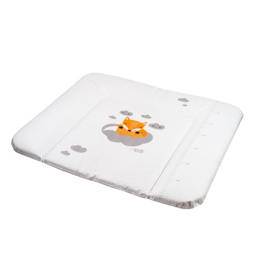 Praktická tvarovaná prebaľovacia podložka s moderným dizajnom New Baby Líška z nepremokavého, plastového materiálu s obrázkom líšky a obláčikov. Produkt českej značky. Podložka má vyvýšené bočné strany a je možné ju použiť na komode či inom mieste na prebaľovanie. Rozmer: cca 85x70 cm, hrúbka cca 4 cm.