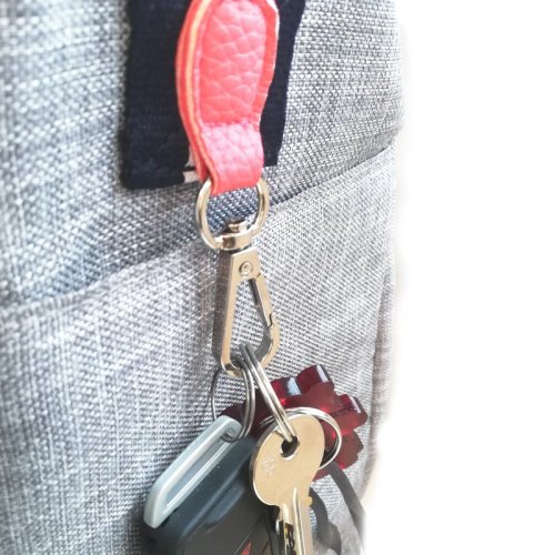 • zvonku 2 vrecká so zipsovým uzáverom a 2 bočné vrecká s karabínkami napr. na kľúče