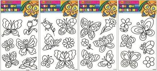 Predlohy na maľovanie na sklo s vyvýšenou kontúrou ADHÉZNE FÓLIE ELEKTROSTATICKY PRILNE K POVRCHU! Vyfarbite a po uschnutí umiestnite na čisté, prípadne navlhčené sklo, zrkadlo, apod... Môžete vyfarbiť: farbičkami na sklo, fixkami, vodovými farbami,i apod.