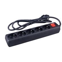 • Čierny predlžovací kábel s piatimi zásuvkami, vypínačom a vstavaným varistorom na ochranu proti prepätiu