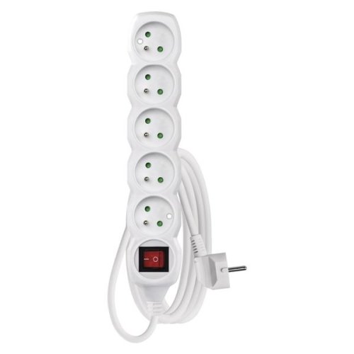 Biely predlžovací prívod, 5 zásuvka s vypínačom, dĺžkou 3 ma prierezom vodiča 1 mm2