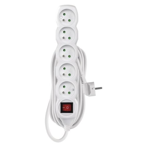 Biely predlžovací prívod, 5 zásuvka s vypínačom, dĺžkou 7 ma prierezom vodiča 1 mm2 Vhodný pre maximálnu záťaž 10 A max Predlžovací prívod 7 m na 230 V~ slúži na predĺženie elektrickej energie tam, …