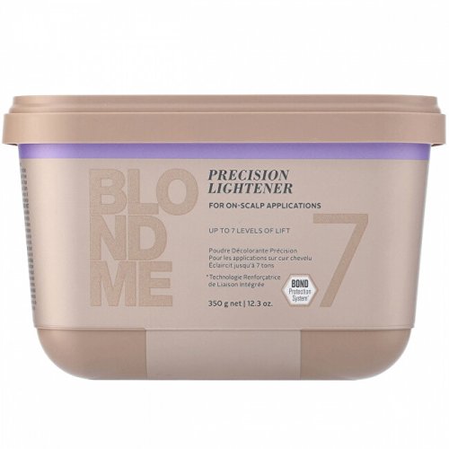 Všestranný farbiaci a ošetrujúci systém s integrovanou technológiou Dual Bond vám umožní zvládnuť akúkoľvek blond výzvu a vytvárať tie najúžasnejšie blond štýly. Integrovaná technológia Dual Bond vo všetkých BLONDME farbiacich pomáha obmedzovať poškodenie na všetkých úrovniach. Chráni väzby počas chemických procesov a pomáha vytvárať nové väzby v rámci špeciálnej starostlivosti v salóne aj doma. Duálny bond systém prináša maximálnu istotu pri farbení a zosvetľovaní. Zosvetľovač 7 je vhodný na precízne odfarbenie odrastov. Nová receptúra Swell Control obmedzuje napučanie a umožňuje jedinečnú precíznosť pre čistejšie farbiace výsledky bez rušivých línií medzi jednotlivými farbami. Integrovaný komplex Temperature Balancing prináša chladivý efekt počas doby pôsobenia a integrovaná technológia Anti Metal Bond Protection chráni vlasové vlákno počas doby pôsobenia na obmedzenie lámania vlasov.