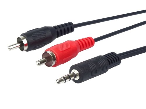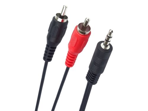 Kábel stereojack 3.5mm - 2x CINCH M na prepojenie audia. - konektory 3.5" stereojack samec - 2x cinch samec - vhodný na prepojenie TV, k mobilom, mp3 a pod. - dĺžka 2m
