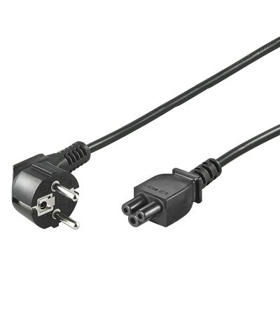 Napájací kábel v čiernom prevedení pre notebook. Trojžilový kábel je zakončený zástrčkou typu "Mickey mouse" IEC 320 C5.