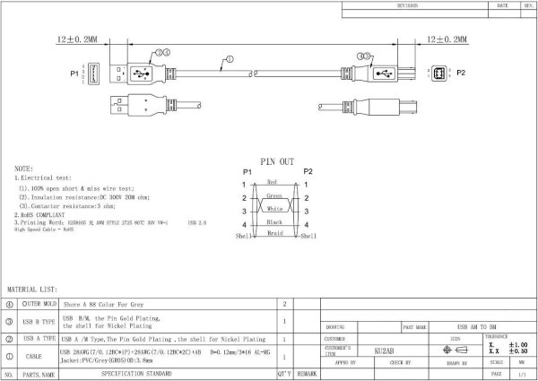 PremiumCord Kábel USB 2.0, AB, 0.5m