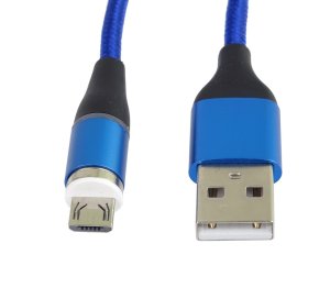 PremiumCord Magnetický micro USB a USB-C nabíjací a dátový kábel 1m, pre prúd až 3A, modrý