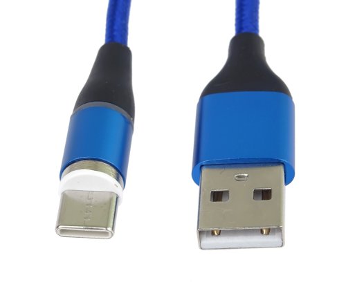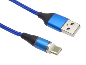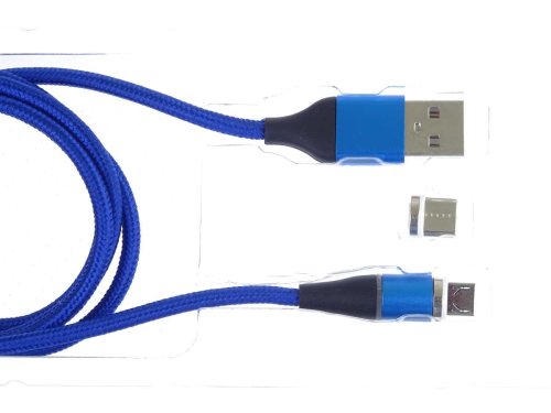 PremiumCord Magnetický micro USB a USB-C nabíjací a dátový kábel 1m, pre prúd až 3A, modrý - Kábel obsahuje dve výmenné magnetické koncovky Micro USB a USB-C - Konektor micro USB alebo USB-C sa zasunie ...