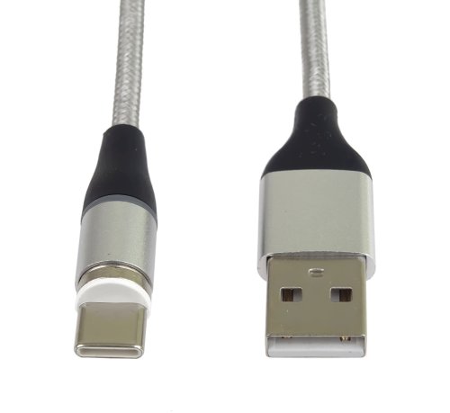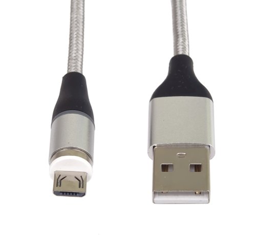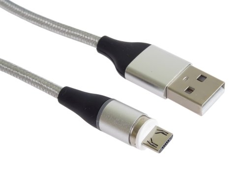 PremiumCord Magnetický micro USB a USB-C nabíjací a dátový kábel 1m, pre prúd až 3A, strieborný
