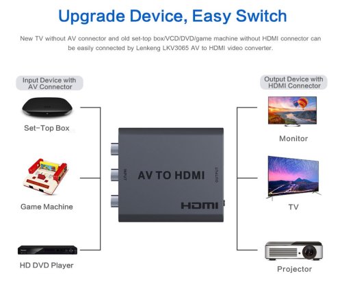 Popis produktu: PremiumCord prevodník AV kompozitného signálu a stereo zvuku na HDMI 1080P alebo 720P - Prevádza signál z AV rozhrania na digitálne rozhranie HDMI pre monitor - Vstup: AV kompozitný signál …