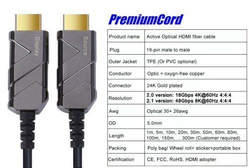 Profesionálny optický HDMI kábel na prenos signálu na dlhé vzdialenosti bez straty kvality.